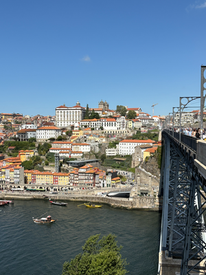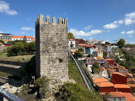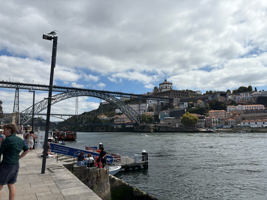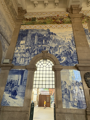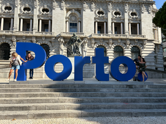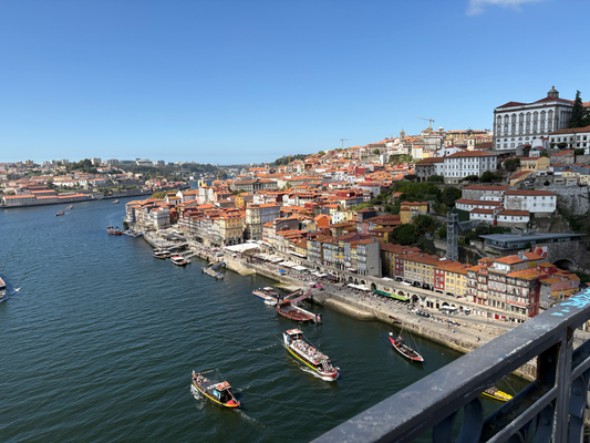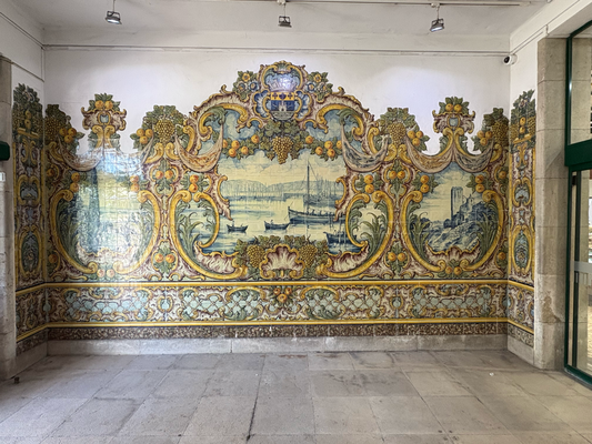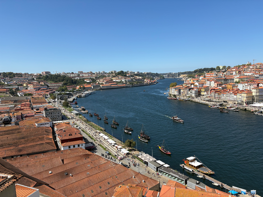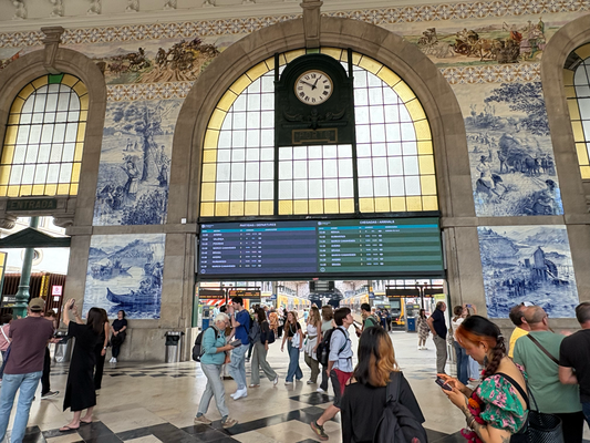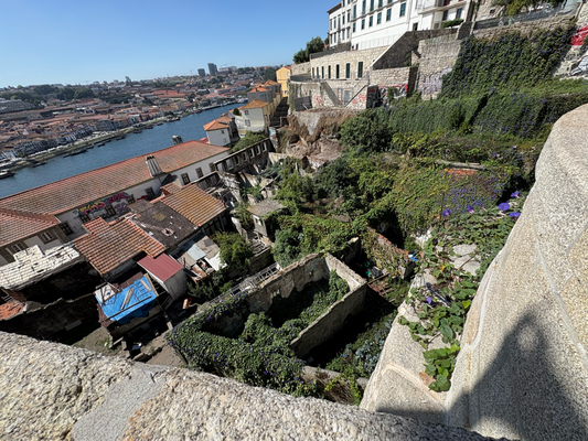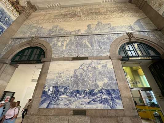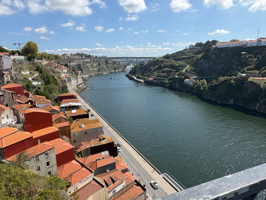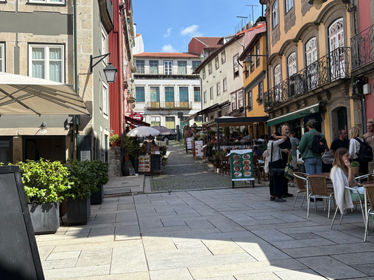 Dann sind wir all die Treppen hinuntergestiegen, bis wir wieder bei unserem Auto waren. Von hier aus ging es dann direkt nach Porto, zu unserer Unterkunft, wo wir glücklicherweise einen Parkplatz zur Verfügung gestellt bekamen. So hatten wir dann noch etwas Zeit, erste Eindrücke von Porto zu sammeln. Einerseits den Bahnhof von Saõ Bento, dann den Time-Out Market Porto - einem Markt mit Imbissständen, und zuletzt sind wir hinunter an den Douro gegangen, wo wir - jetzt wiederum bei schönem und warmen Wetter - uns einen Drink und eine kleine Zwischenverpflegung gönnten.