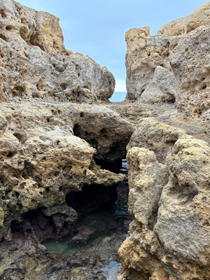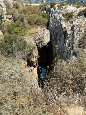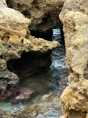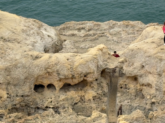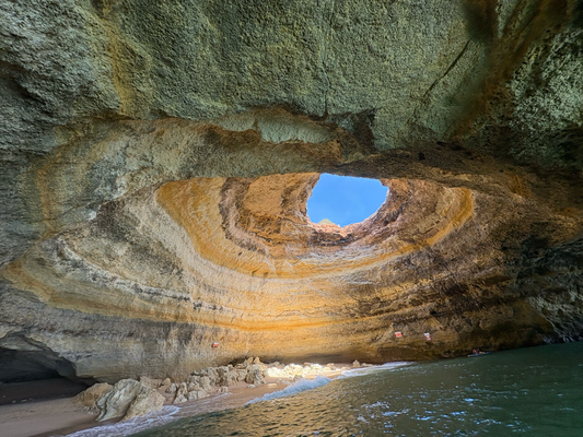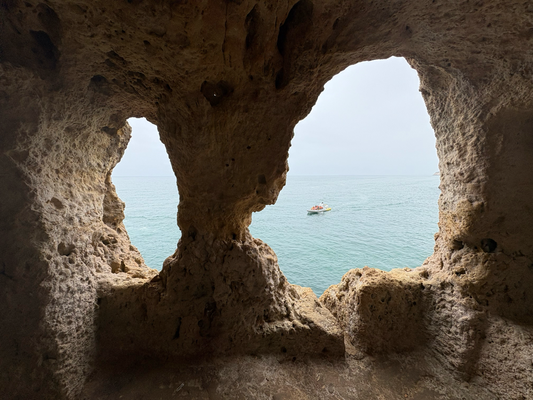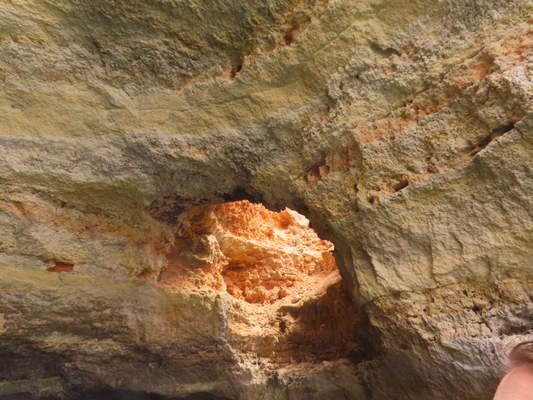 Das "kleine Frühstück, das uns gestern am Abend versprochen wurde, entpuppte sich als richtig schönes Frühstücksbuffet. Mit verschiedenen Broten, Schinken, Butter, Konfitüre und einem recht guten Kaffee. So konnten wir frisch gestärkt unsere Weiterreise antreten. Zuerst nach Carvoeiro, wo wir die zwei Fenster in den Felsen von innen anschauen wollten. Gefonden haben wir diese sofort, aber da der Zugang mit einem Band abgesperrt war, trauten wir uns beim ersten Mal nicht, das Band zu ignorieren. Da aber immer mehr Leute unter oder über dem Band durchgingen, sind auch wir denen gefolgt und haben die Höhle mit den zwei Fenstern zum Meer gefunden.