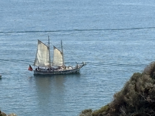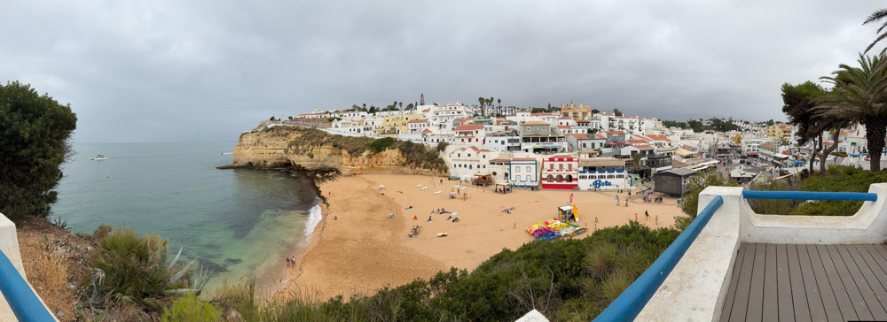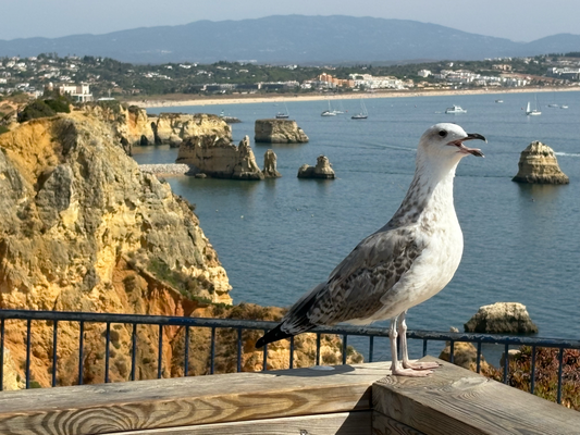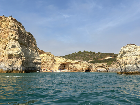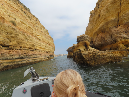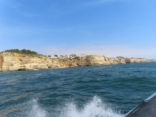 Auch heute gab es in der Unterkunft kein Morgenessen. So sind wir mit dem Auto in die Stadt Lagos gefahren und haben dort in der Nähe des Strandes ein Café gefunden, bei dem wir dann ein tolles Frühstück erhielten. Für mich gab es einen Croissant mit Schinken und einen Croissant Natur. Stephanie hatte ein Avocadobrot mit einem Spielgelei. Dann ging es wieder weiter in Richtung Portimão. Dort sind wir zuerst durch den Markt in der Nähe des Strandes gegangen, dann am Strand entlang über einen Boardwalk. Beim Zurückgehen entschieden wir uns, die Bootstour zu den Höhlen von Benagil zu buchen. Mit Atlantis Tours sind wir dann mit einem kleineren Boot - zusammen mit etwa 20 Leuten - über das etwas unruhige Meer, der Küste entlang über Carvoeiro zu den Höhlen von Benagil gefahren. Die Tour hat mir zwar sehr gut gefallen, aber die Höhlen von Benagil haben mich nicht wirklich überzeugt. Wäre nicht die ganze Tour gewesen, ich wäre wohl enttäuscht gewesen. Das kommt davon, wenn man - wegen dem ganzen Rummel um die Attraktion - zuviel erwartet. Auch die Delphine, von welchen der Guide gesprochen hat, liessen sich nicht sehen.
