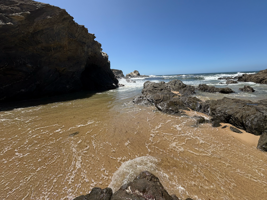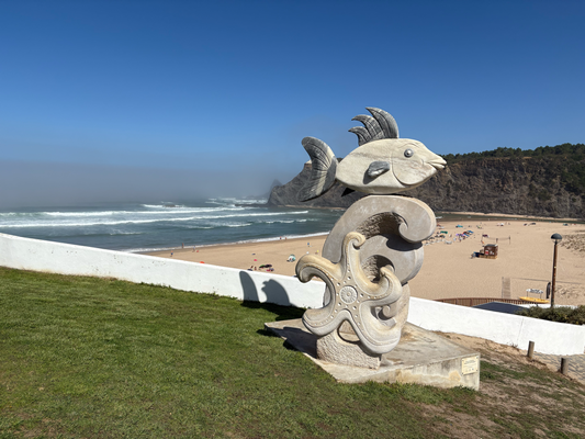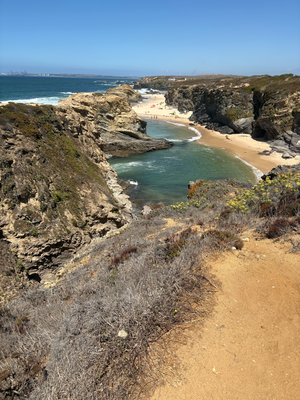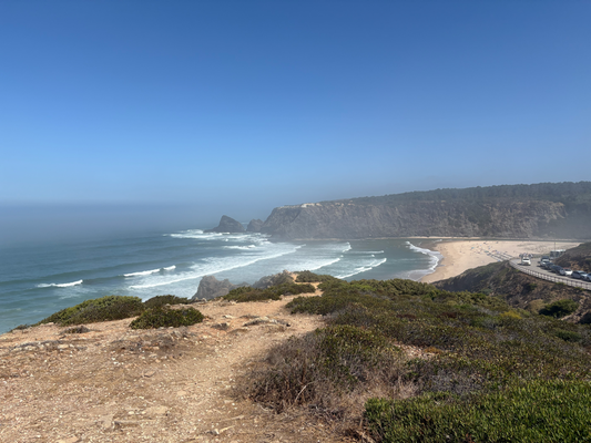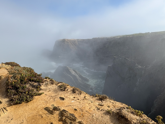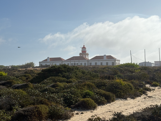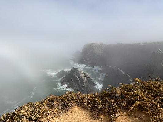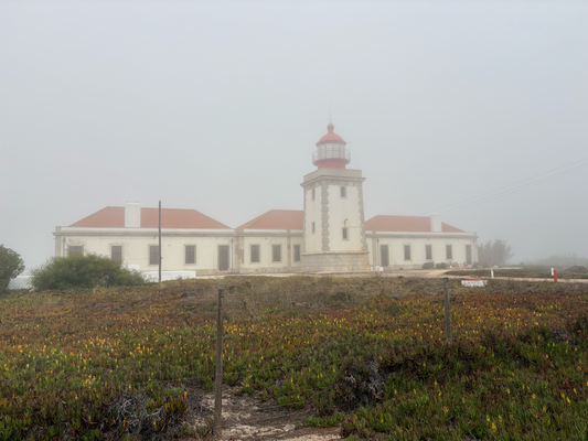 Nach dem Frühstück sind wir weiter südwärts gefahren. Zuerst bis zum Cabo Sardao, wo wir einen Spaziergang ans Meer machten. Dort war aber das Wetter nicht ganz perfekt - es hatte viel Nebel, so dass man nicht einmal immer bis zum Meer hinuntersah. Beim Zurückgehen sind wir dann noch den Farol do Cabo Sardao, zumindest von aussen, anschauen gegangen.