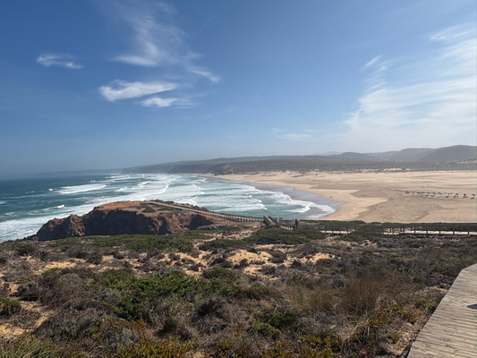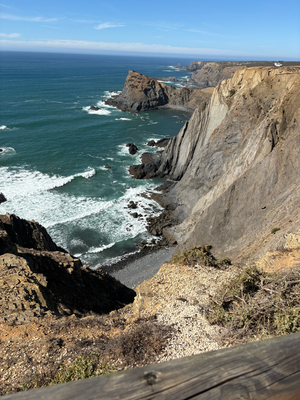 Von der Praia da Arrifana sind wir heute nach dem Frühstück, welches auch heute sehr gut war, weggefahren. Zuerst sind wir nach Bordeira und zur Praia da Bordeira gefahren. Da wir dort nicht an den Strand gehen konnten, sind wir etwas weiter gefahren und haben dort das Pontal da Carrapateira besucht. Ein Ort mit vielen View-Points, zum einen auf die Praia de Bordeira und zum anderen auf die Klippen südlich davon.