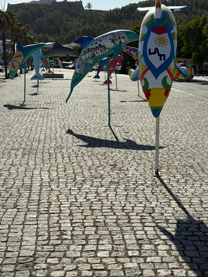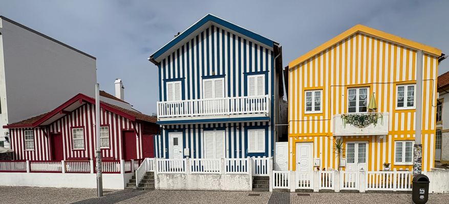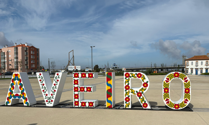 Bevor wir von Costa Nova do Prado weiterfuhren, haben wir noch ein paar der farbigen Häuser fotografiert. Dann sind wir nach Aveiro, dem "Venedig" von Portugal gefahren. Mit Venedig hat das aber für mich wenig zu tun. Ein Kanal und sehr grosse motorbetriebene Gondeln. Nach dem Besuch des Aveiro "Sign's" gingen wir noch etwas durch die Stadt und sind dabei wieder einmal auf eine Kirche getroffen.
