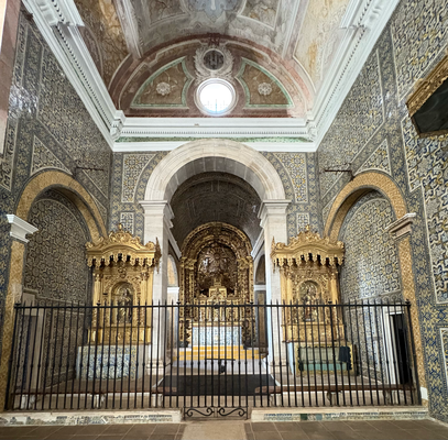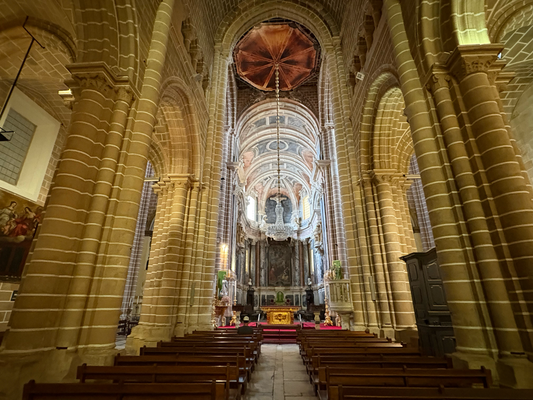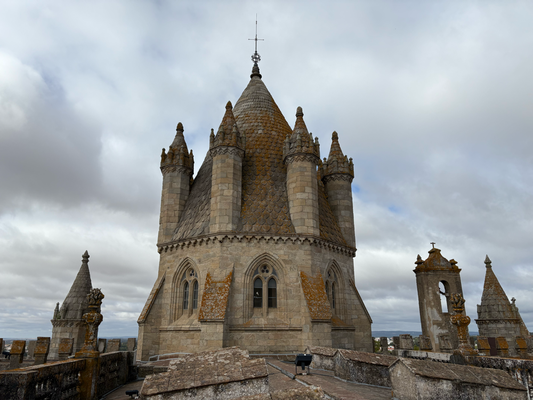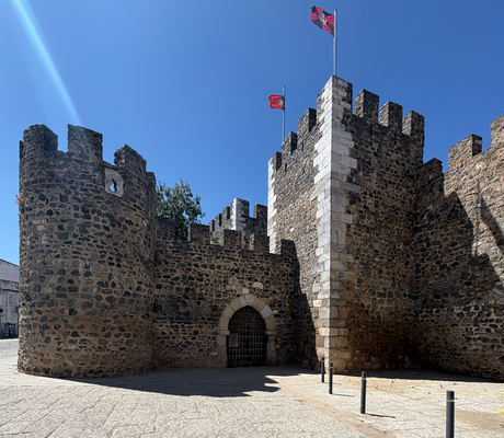 Heute Morgen haben wir nach dem Morgenessen zuerst einen Stadtrundgang in Evora gemacht. Dabei sind wir an verschiedenen Kirchenbauten und dann auch an den Ruinen eines römischen Tempels vorbeigekommen. Zum Abschluss des Rundgangs haben wir die Kathedrale von Evora besucht. Neben dem Aufstieg auf den Turm haben wir auch das Museum und den "Tresor" besucht. Dort war leider das Fotografieren wieder einmal nicht erlaubt. Nach diesen Besuchen ging es dann zurück zum Hotel, um unser Auto zu holen und weiter nordwärts zu fahren. Die erste Etappe führte uns bis zum Castelo de Almourol, einem Wasserschloss. Da dort der Zugang nur mit Boot möglich war, haben wir darauf verzichtet und sind bis Tomar weitergefahren.