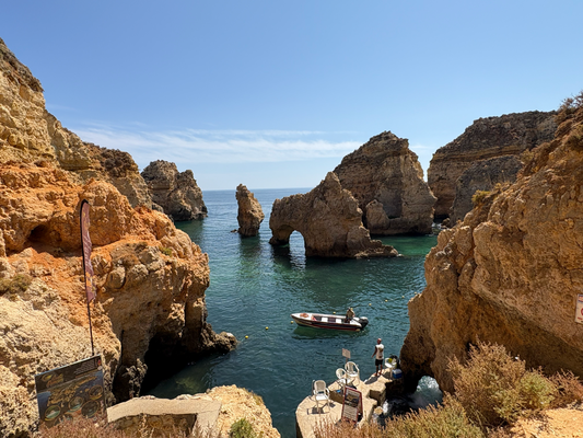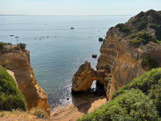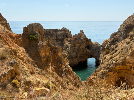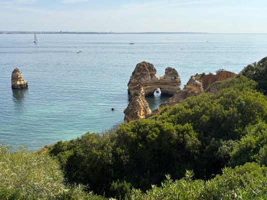 In Lagos sind wir als Erstes in die Nähe der Paria da Dona Ana gefahren. Dort fanden wir glücklicherweise einen Parkplatz und sind dann über den Klippen zur Praia do Camilo und zur Ponta da Piedade spaziert. Auch hier konnten wir eindrückliche Klippen und Felsen bewundern und Fotografieren. Bei der Ponta da Piedade stiegen wir, nachdem wir im dortigen Restaurant einen kühlen Drink genossen hatten, zu den Booten hinunter, die die Touristen zu den Bögen und Höhlen in den Felsen fahren. Auf dieses haben wir aber hier verzichtet, da wir dann bei den Höhlen von Benagil eine solche Tour buchen wollen.