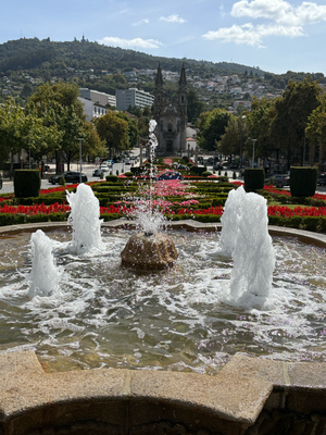 Heute sind wir noch weiter nach Norden gefahren. Als Tagesziel haben wir Braga gewählt. Auf den Weg haben wir uns entschieden, auch den mittelalterlichen Ort Guimarães zu besuchen. Dort besichtigten wir die Stadtmauer, den kleinen Mark, dann den Paço dos Duques de Bragança. Ein Palast aus dem 15. Jahrhundert. Auf die Innenbesichtigung des Castelo do Guirmarães haben wir dann verzichtet, Nach einem Stadtrundgang sind wir dann wieder zu unserem Auto zurück, um weiter nach Braga zu fahren. Den grössten Teil der Strecke konnten wir über gute Autobahnen fahren, so dass wir recht schnell von einem Ort zum anderen gekommen sind.