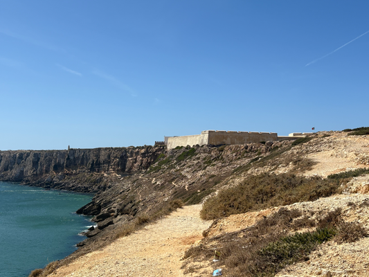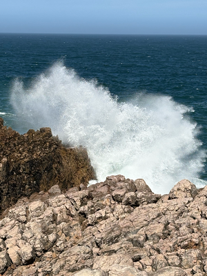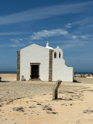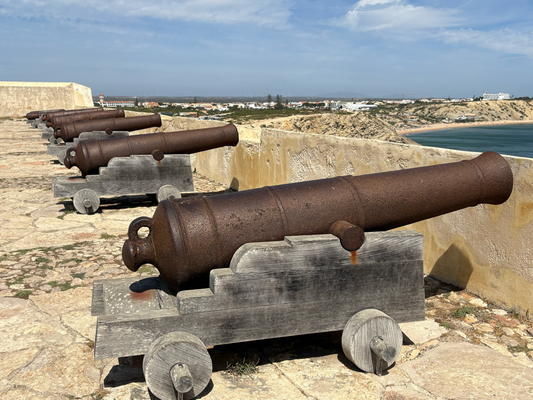 Dort konnten wir dann die grossen Wellen und Brecher an den Klippen fotografieren. Unser Spaziergang den Klippen entlang führte uns fast bis zur Paria da Zimbreirinha. Dann zurück zu unserem Mietauto und mit diesem weiter bis nach Sagres, wo wir als erstes die Festung anschauen gingen. Dies verlangte etwas Geduld, das zur gleichen Zeit sehr viele Leute in die Festung wollten. Dort haben wir dann den ganzen Rundgang um die "Halbinsel" gemacht. Fotogen war unter anderem die Kapelle, dann auch die Aussicht auf das Cabo de São Vicente, dann auf das Städtchen Sagres. Auch die alten Kanonen machten uns Eindruck. Von hier aus sind wir zu unserem heutigen Hotel, dem Mareta Beach Hotel, gefahren.