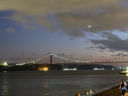 Nach dem Einchecken sind wir dann erst einmal einen Stadtrundgang über die Igreja São Nicolau zur Praça do Comércio gegangen. Dort haben wir die Aussicht auf "Cristo Rai" in der Ferne und auf die Brücke 25do Avril (die Golden Gate von Lissabon) genossen. Weiter ging's durch den Arco da Rua Augusta und diverse kleinere Gassen zu unserem Apero, einem Vino Verde, in einer Strassenkneipe.