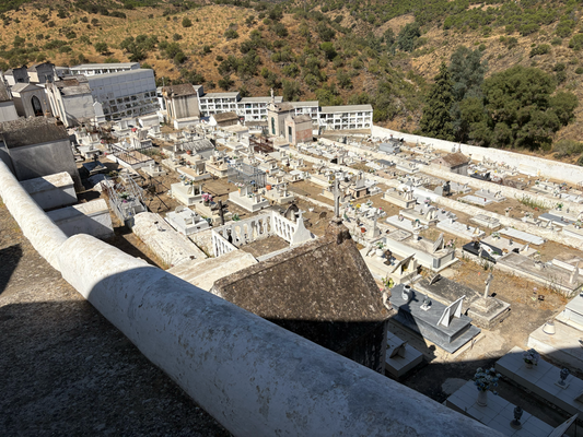 Dann sind wir heute das erste Mal gegen Norden gefahren. Erstes Ziel war Mértola. Dort haben wir einen Spaziergang zur Burg und der Igreja de Matriz de Mértola, einer sehr schönen Kirche gemacht. Dort konnte auch das Museum gratis besucht werden. Auch der Aufstieg auf den Turm der Burg war eindrücklich. Etwas was ich als Besonders empfunden habe, war der Friedhof des Ortes. Neben den Grabmalen waren Urnenwände, die für mich aussahen wie Mehrfamilienhäuser...