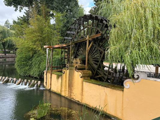 Dann ging es zurück bis zur alten Brücke und zum Wasserrad, mit welchem Wasser in eine höher gelegene Leitung gefördert wird.
