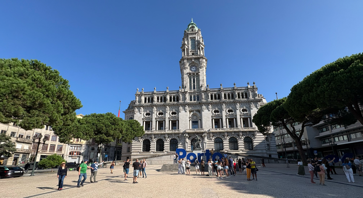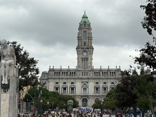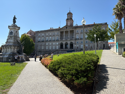Heute Morgen sind wir bei Brunch-it eingekehrt für unser Morgenessen. Da die Waffeln ausgegangen waren, konnte ich nicht das American Gaufres Frühstück bestellen. So habe ich halt den "Canadian..." bestellt. Das waren dann zwei Tranchen Speck, Pancakes mit Butter und Ahornsirup. Dazu gab es einen guten Kaffee und einen Orangenjus. Von hier aus ging es dann zum Rathaus von Porto. Einem imposanten Gebäude. Dabei sind wir auch an der Buchhandlung Lello - einer Berühmtheit in Porto - vorbei gekommen. Da es schon sehr viele Leute hatte, die dort angestanden sind, haben wir auch hier darauf verzichtet.