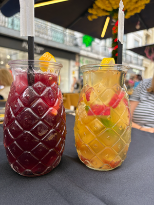 Durch das Shopping Center "Armazens do Chiado", wo wir von den Rolltreppen profitierten, sind wir dann wieder zur der Rua Augusta hinunter, wo wir einen feinen Sangria Apero - einmal weiss, einmal rot, genossen. Im gleichen Restaurant liessen wir dann auch unser Nachtessen servieren. Zum Abschluss des Tages sind wir nochmals zur Praça do Comércio gegangen und haben dort die letzen Sonnenstrahlen genossen.